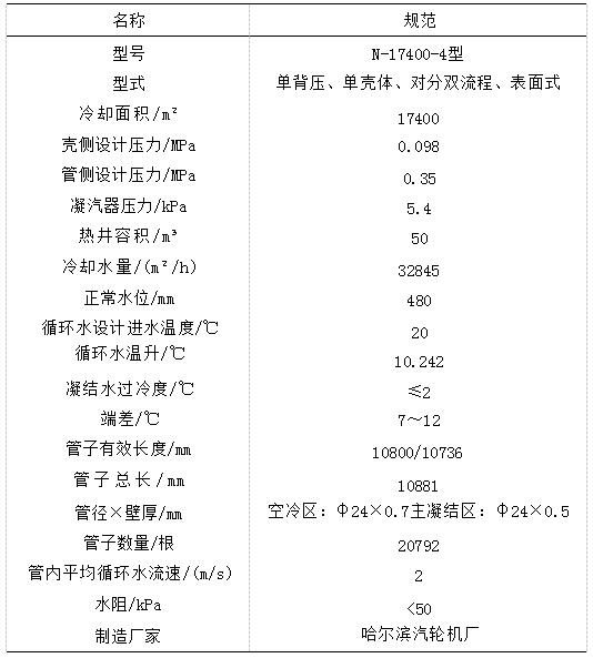我公司#3汽輪發(fā)電機組是亞臨界一次中間再熱、單軸、高中壓合缸、雙缸雙排汽、抽汽凝汽式汽輪機,型號C300-16.7/538/538,凝汽器形式如表1所示。#3機組為開式循環(huán),SF系列凝汽器膠球清洗裝置,配置5臺48LKXB-20立式單級單吸導葉內(nèi)體可抽出式混流循泵,每臺循泵額定供水量10000t/h。
