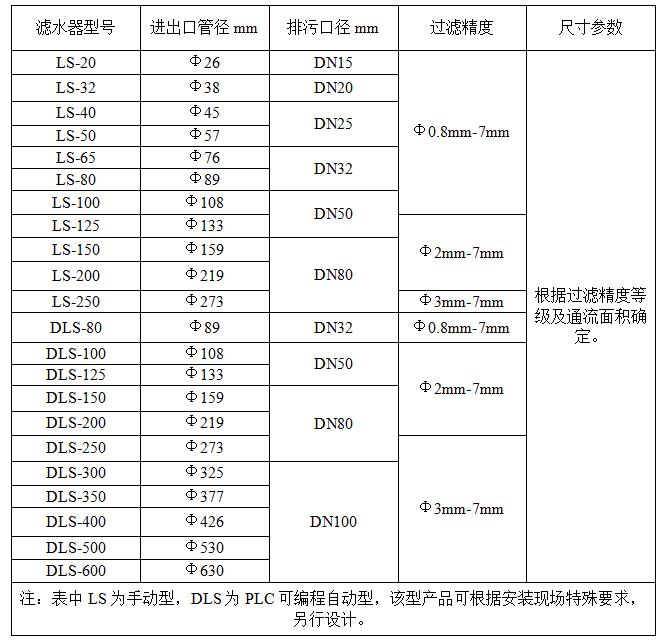五、電動濾水器規格型號: