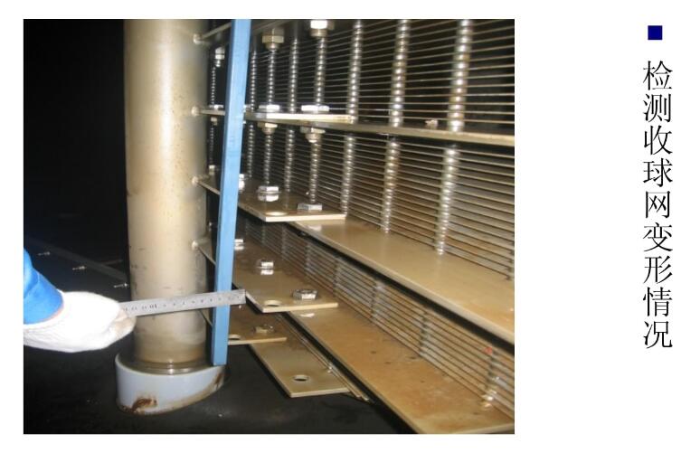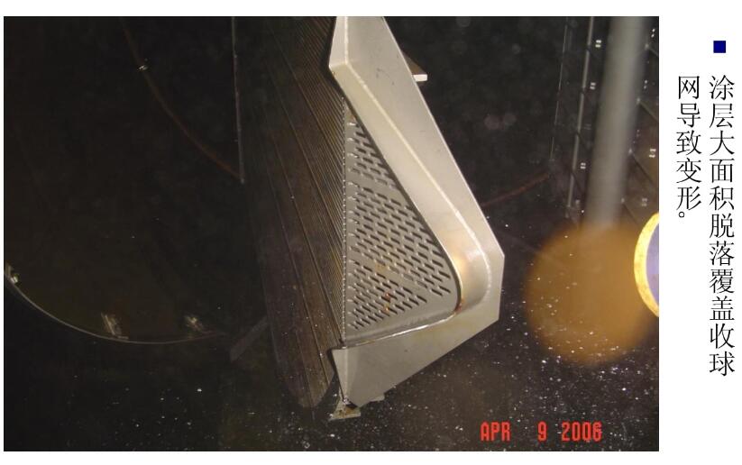 2.收球網變形,凝汽器水室涂層脫落,大面積覆蓋在收球網上,導致收球網變形。